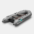 Дно — фанерный пайол с антискользящей насечкой с комплектом алюминиевых стрингеров. Самый удобный в использовании вид пола: его не надо просушивать, невозможно поцарапать или проколоть.