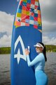 Sup доска надувная для серфинга 347x81x12 см, макс. нагрузка 140 кг Aqua Arrow 11.4 ART Cube синий/разноцветный сапборд для плавания для взрослых, плавник, весло, лиш, насос, ремкомплект и сумка
